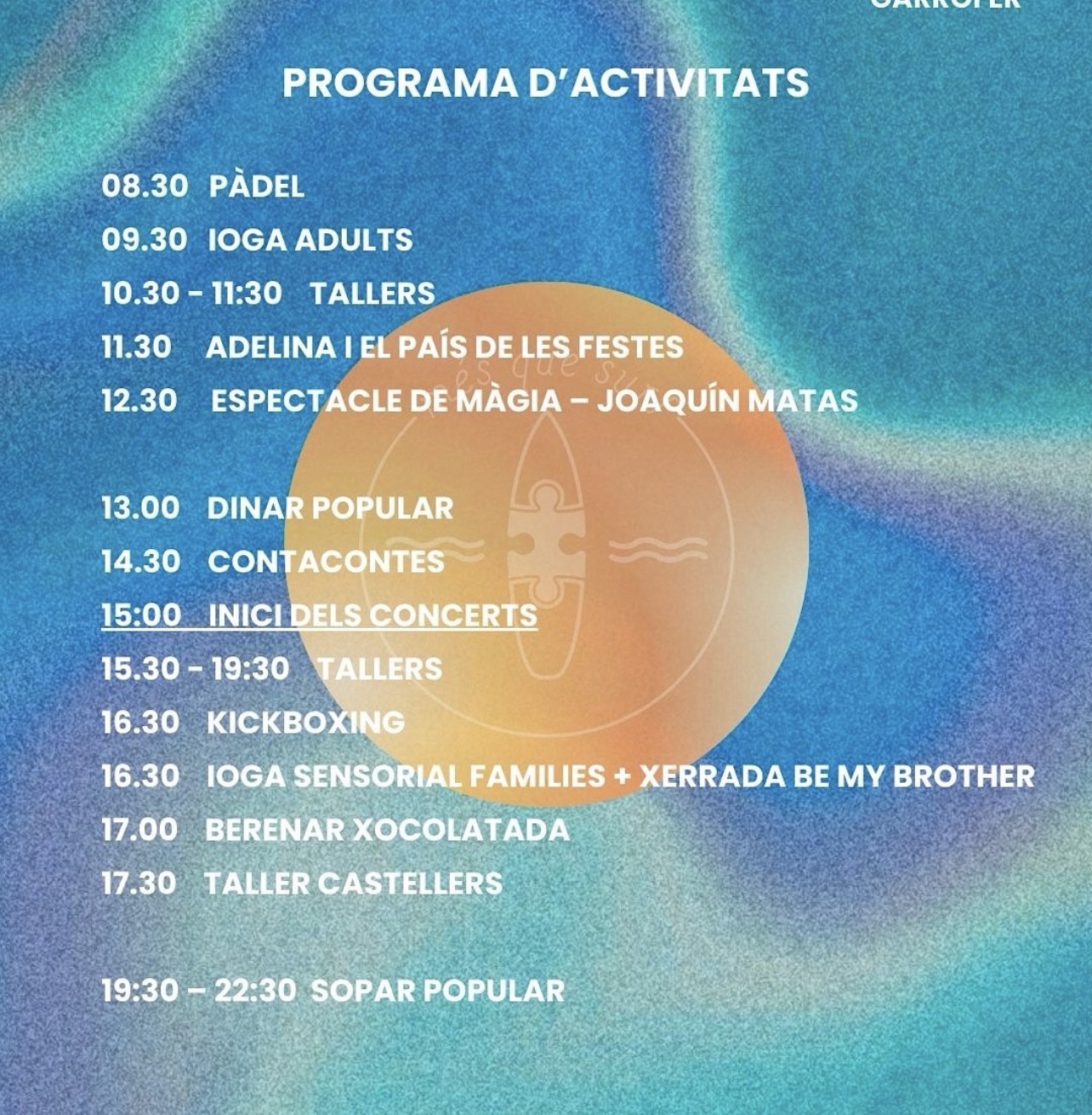 8:30 h.📍🏄🏻♂️Càmping El Garrofer: MÉS QUE FEST (festival solidari)